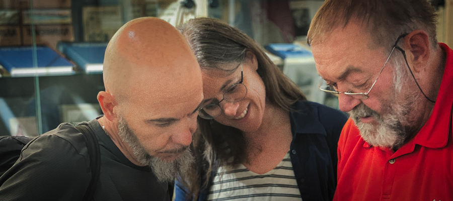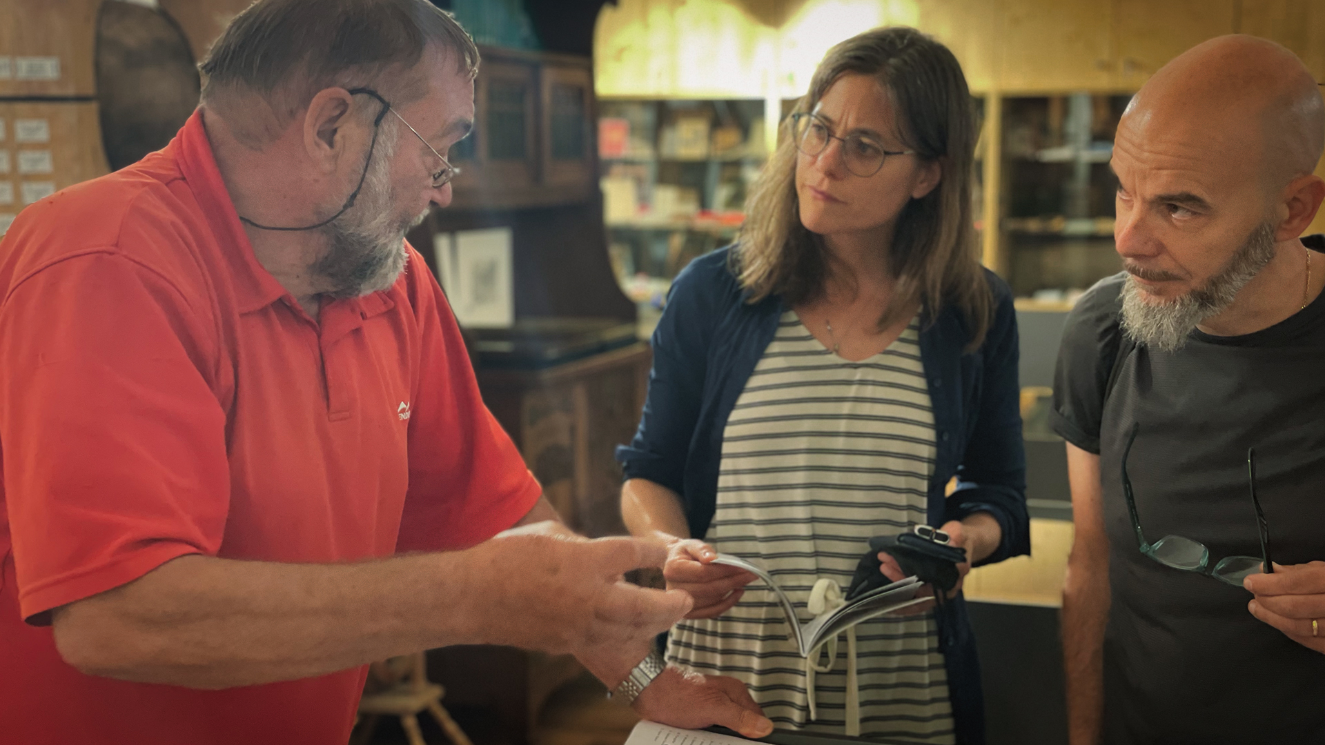 Mit Karin Schmid und Raphael Gressel erkundete Andy für seine Zuhörer das Museum der Dolomitenfreunde im Rathaus und hörte gespannt zu. "Ich will eine dieser fürchterlichen Granaten angreifen", bat er tief beeindruckt. #dolomitenfreunde
