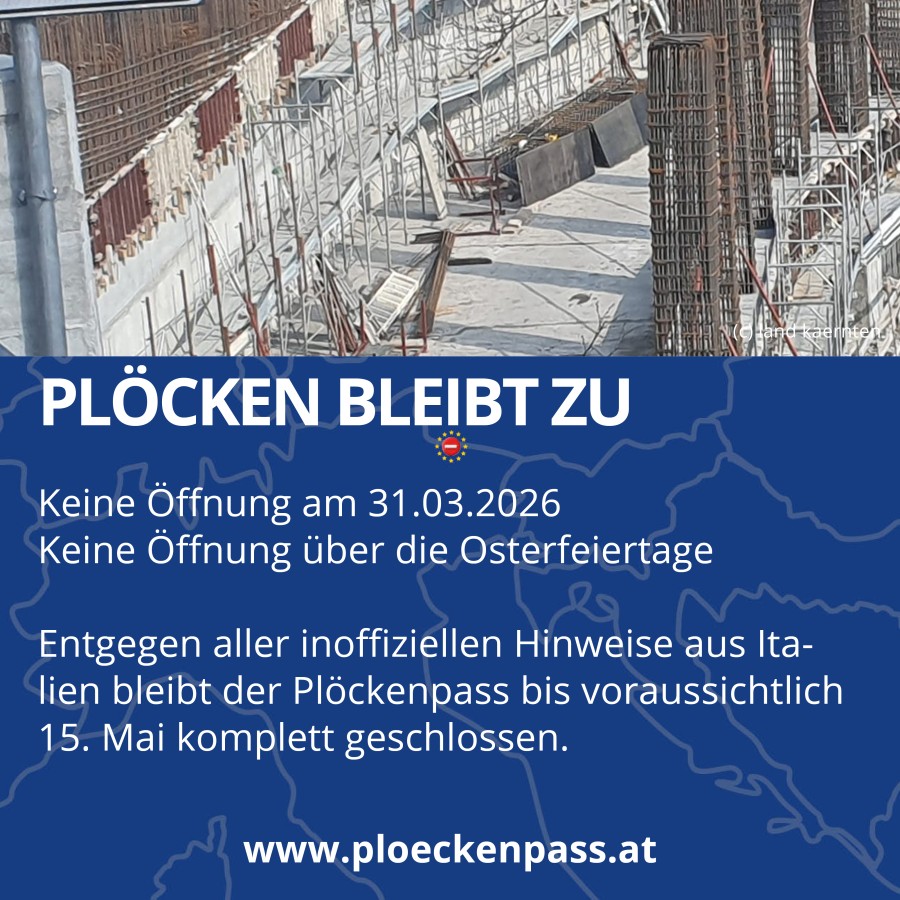 Nichts wird es mit der von Vielen erhofften Öffnung des Plöckenpasses über Ostern. Die wichtige Verbindung zwischen dem Gailtal und Italien bleibt weiterhin gesperrt, voraussichtlich bis 15. Mai oder auch länger. Der Bürgermeister von Kötschach-Mauthen kritisierte die mangelnde Information aus Italien und vom Land Kärnten.